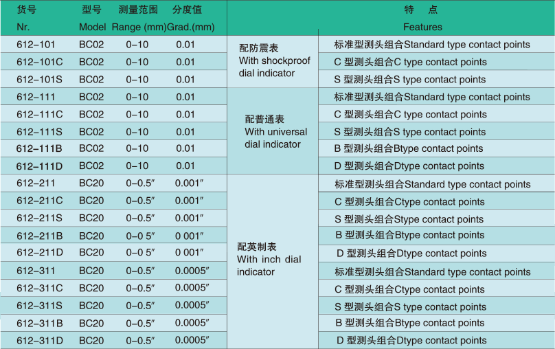 大量程英制指示表