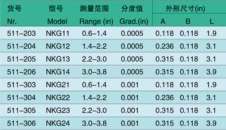 0.001”英制表