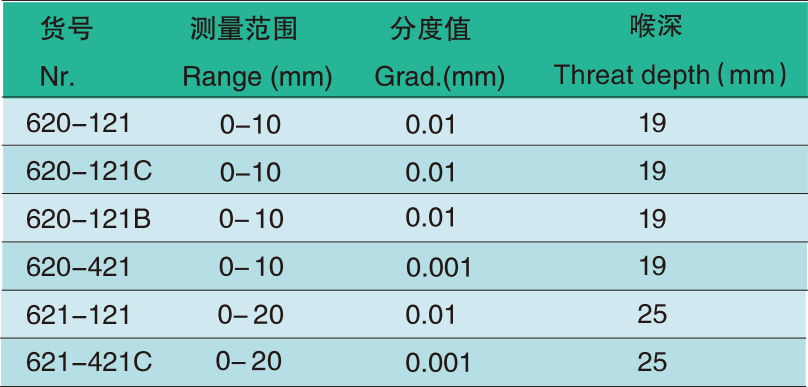 0.001”英制表